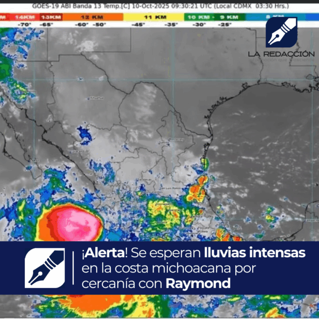 Morelia, Mich.— A las 7:00 horas, la Coordinación Nacional de Protección Civil (CNPC) emitió una alerta ante el avance de la tormenta tropical Raymond, que en ese momento se hallaba muy próxima a las costas de Coahuayana, Michoacán, y Zihuatanejo, Guerrero.