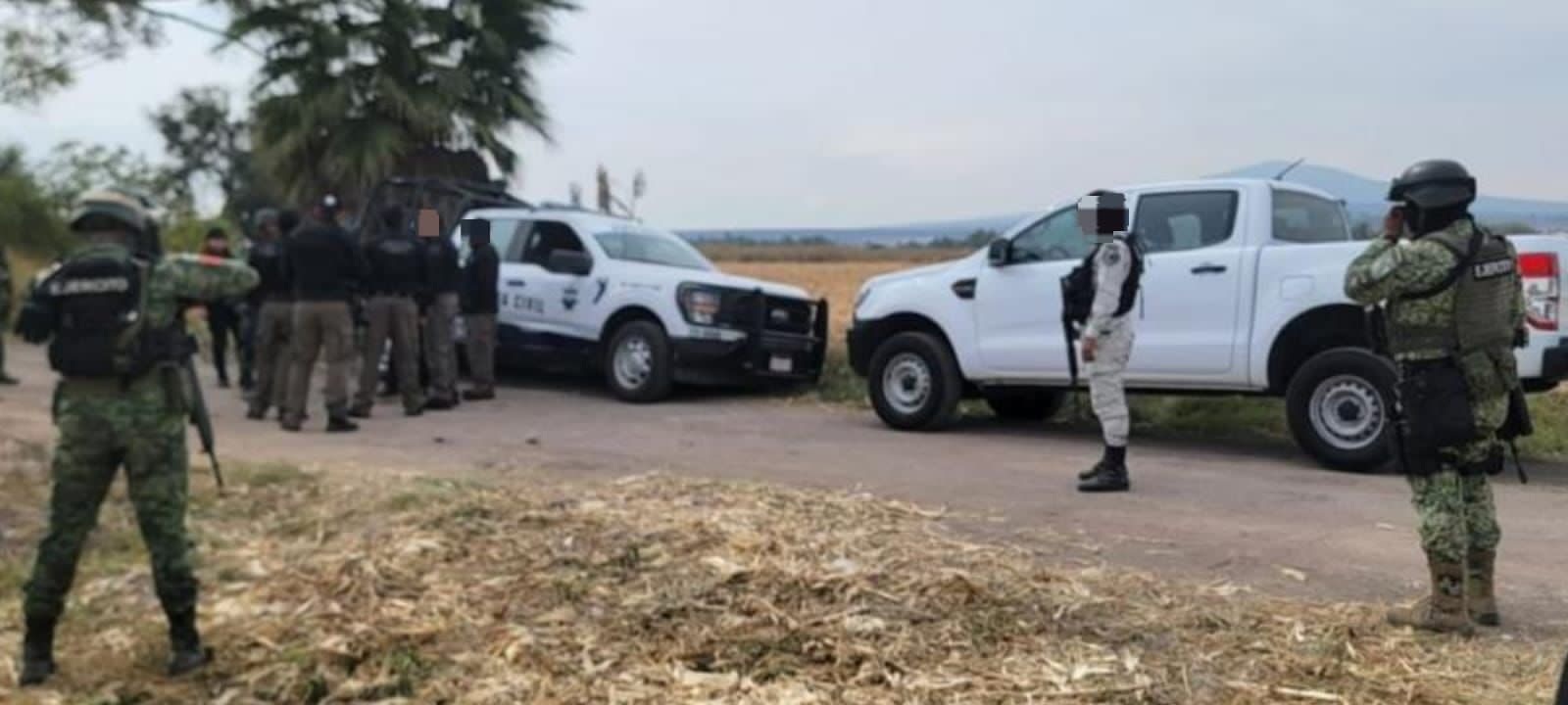 También incautaron dos armas de fuego largas, 649 cartuchos de grueso calibre, 3 mil 690 dosis de hierba verde y seca, al parecer marihuana, cuatro camionetas, dos motocicletas y una máquina trilladora.