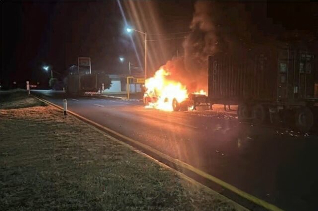 Sobre la misma carretera de cuota, pero a la altura de Vista Hermosa, en los límites entre Michoacán y Jalisco, sujetos armados se apoderaron de al menos tres camiones de carga y los incendiaron.