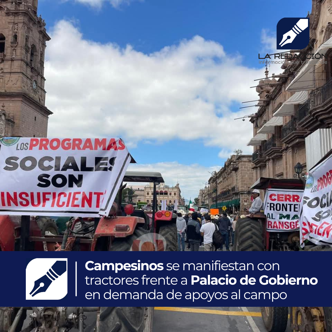 Morelia, Mich.- Desde temprana hora, decenas de campesinos michoacanos se manifestaron con tractores y vehículos agrícolas frente a Palacio de Gobierno, en el Centro Histórico de Morelia, para exigir mejores condiciones para el sector rural.