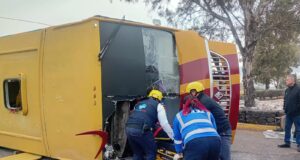 Diez lesionados tras volcadura de autobús, en Morelia