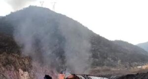 Incendio de pipa cargada de gasolina en la autopista siglo XXI