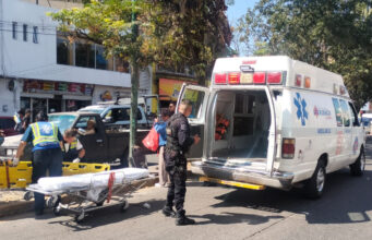 Moto y vehículo chocan en el bulevar, hay dos lesionados