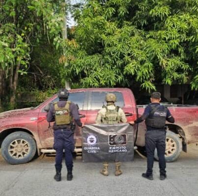 Agentes estatales aseguran en Apatzingán camioneta robada con municiones y droga