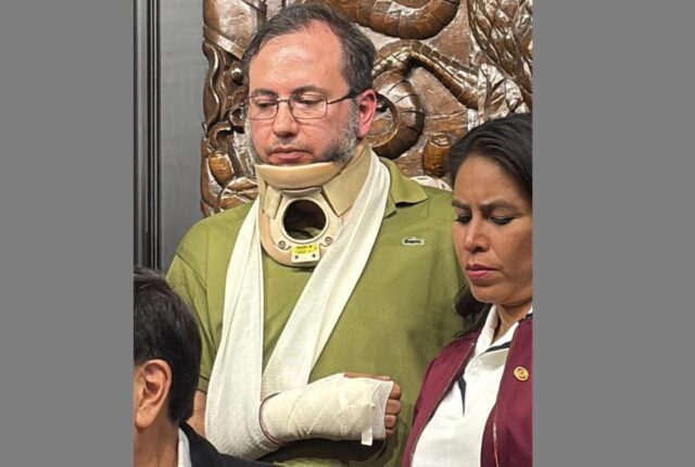 La aparición pública de Emiliano González, colaborador del Senado presuntamente agredido por el presidente nacional del PRI, Alejandro “Alito” Moreno, desató dudas y críticas entre ciudadanos y usuarios de redes sociales, debido a que portaba simultáneamente un collarín cervical y un cabestrillo en el brazo.
