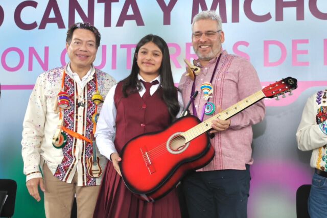 Por su parte, la secretaria de Educación en el estado, Gabriela Molina Aguilar, comentó que “vemos en la música el factor de unidad y de paz. Queremos que llegue el sonido de la guitarra de Paracho a todas las secundarias, no solo de Michoacán, de todo el país”.