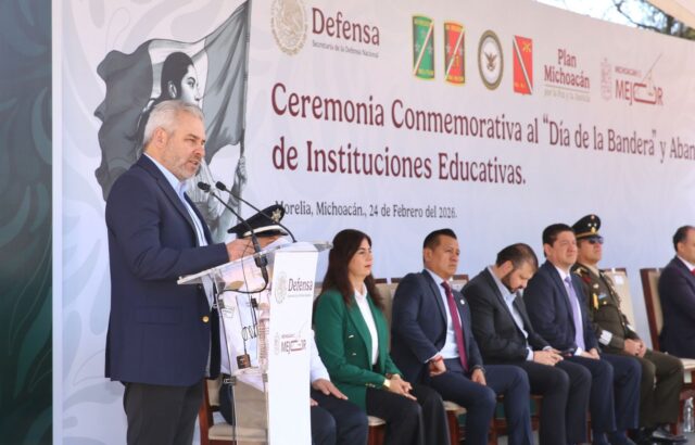 El gobernador llamó a estudiantes de secundaria y media superior participantes en la ceremonia a defender los símbolos patrios, a través de una conducta ejemplar, dedicación al estudio y compromiso con la integridad. “Porque el construir juntos una nación más justa y unida, honramos de la a nuestra bandera y a México”, subrayó.