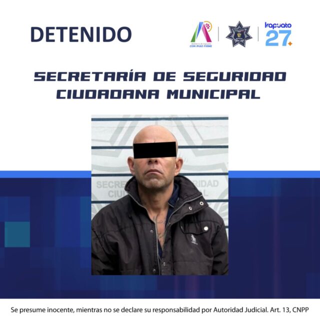 Irapuato, Gto.— Elementos de la Policía Municipal detuvieron a un individuo considerado objetivo prioritario para la Secretaría de Seguridad Ciudadana Municipal (SSCM) de Irapuato, por su posible relación con diversos robos que afectan al patrimonio local, principalmente en tiendas de conveniencia Oxxo y farmacias.