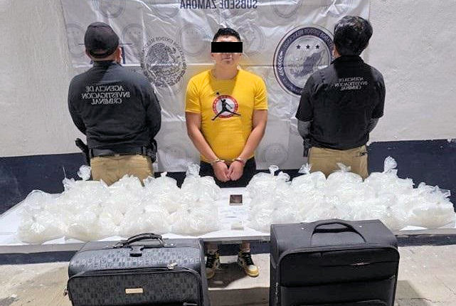 Durante la inspección, los agentes localizaron aproximadamente 40 kilos de metanfetamina —también conocida como cristal, “ice” o “hielo”— distribuidos en 40 bolsas de plástico dentro de dos maletas que el detenido transportaba.