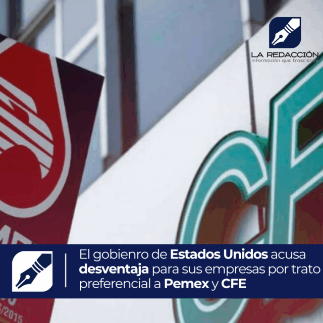 Washington.— El gobierno de Estados Unidos advirtió que las reformas recientes en el sector energético mexicano generan una desventaja para las empresas estadounidenses, al otorgar un trato más favorable a las empresas estatales Petróleos Mexicanos (Pemex) y la Comisión Federal de Electricidad (CFE).