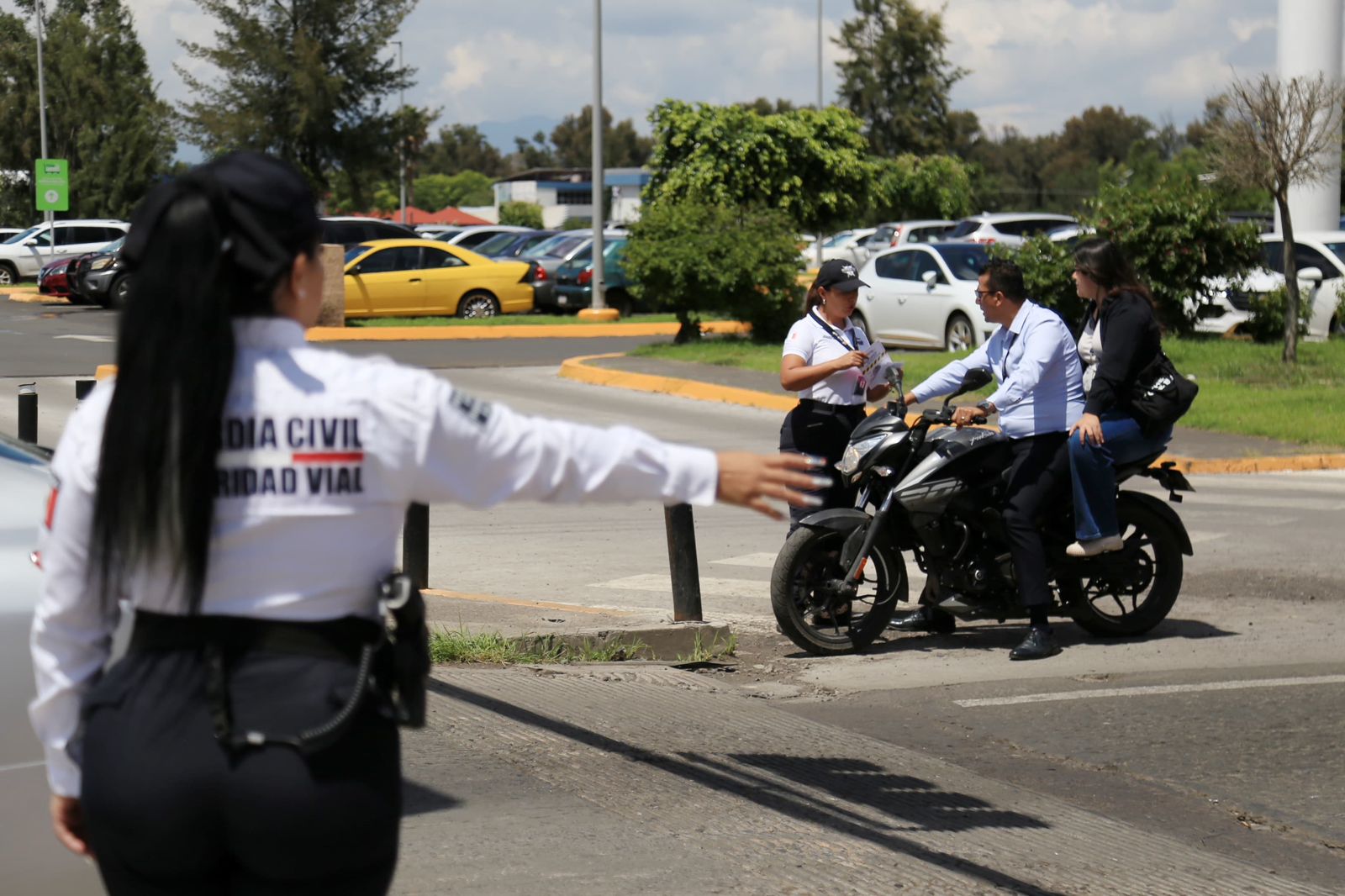A través de los elementos del agrupamiento de Seguridad Vial de la Guardia Civil, se tiene un contacto de primera mano con las y los usuarios de los vehículos birrodantes, mediante trípticos informativos donde se les enseña la importancia de usar el casco de seguridad, así como respetar los límites de velocidad.