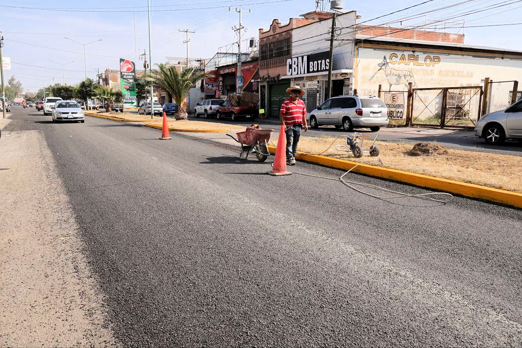 La intervención abarca 1,066 metros lineales, en el tramo que conecta la Carretera Federal 90 con la calle Abasolo, cubriendo una superficie de 13,230 metros cuadrados. En este punto se aplica riego de sello premezclado, una técnica que permite cerrar fisuras, frenar el deterioro del asfalto y prolongar la vida útil de la vialidad, especialmente ante el intenso tránsito que registra a diario.