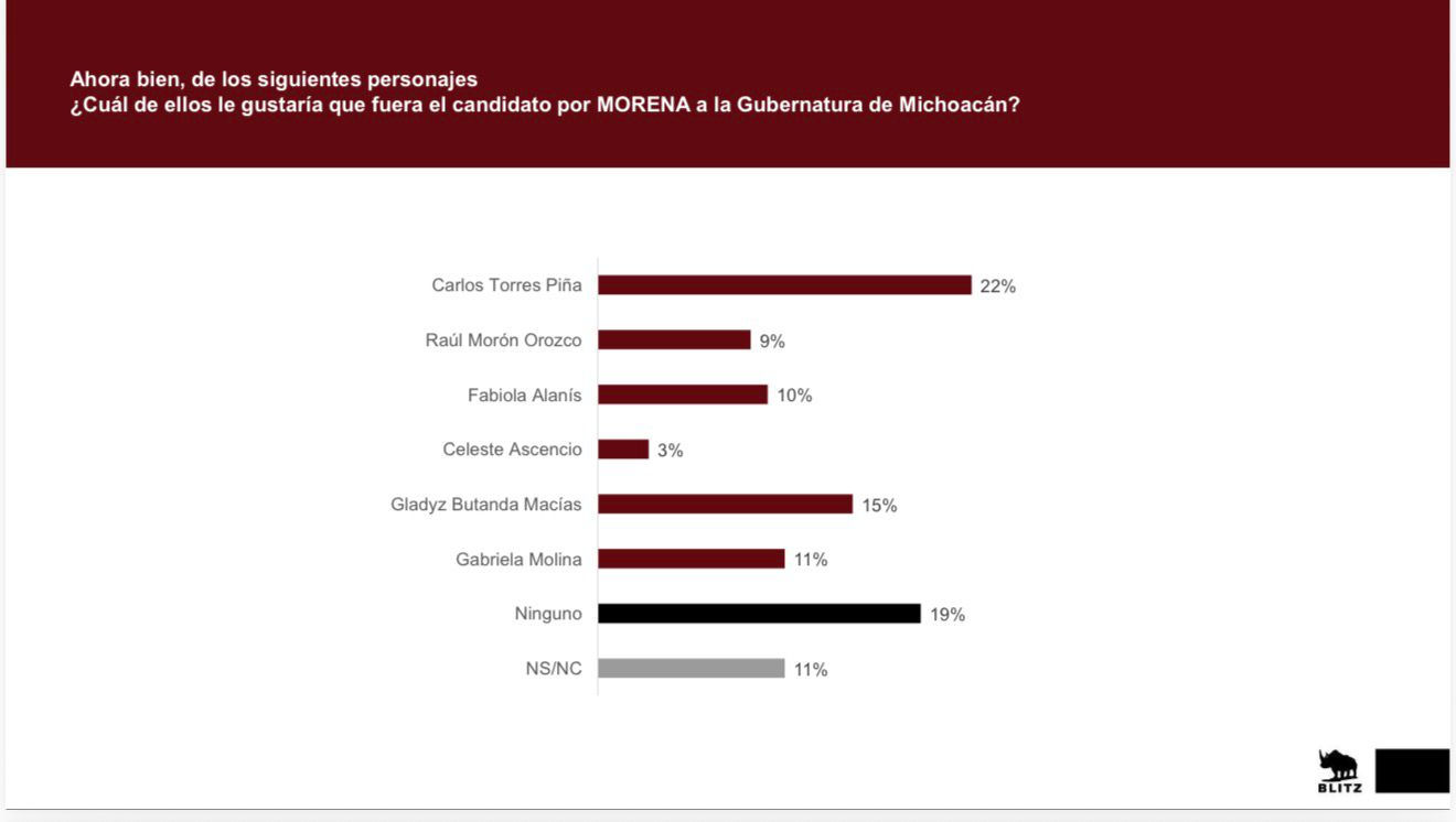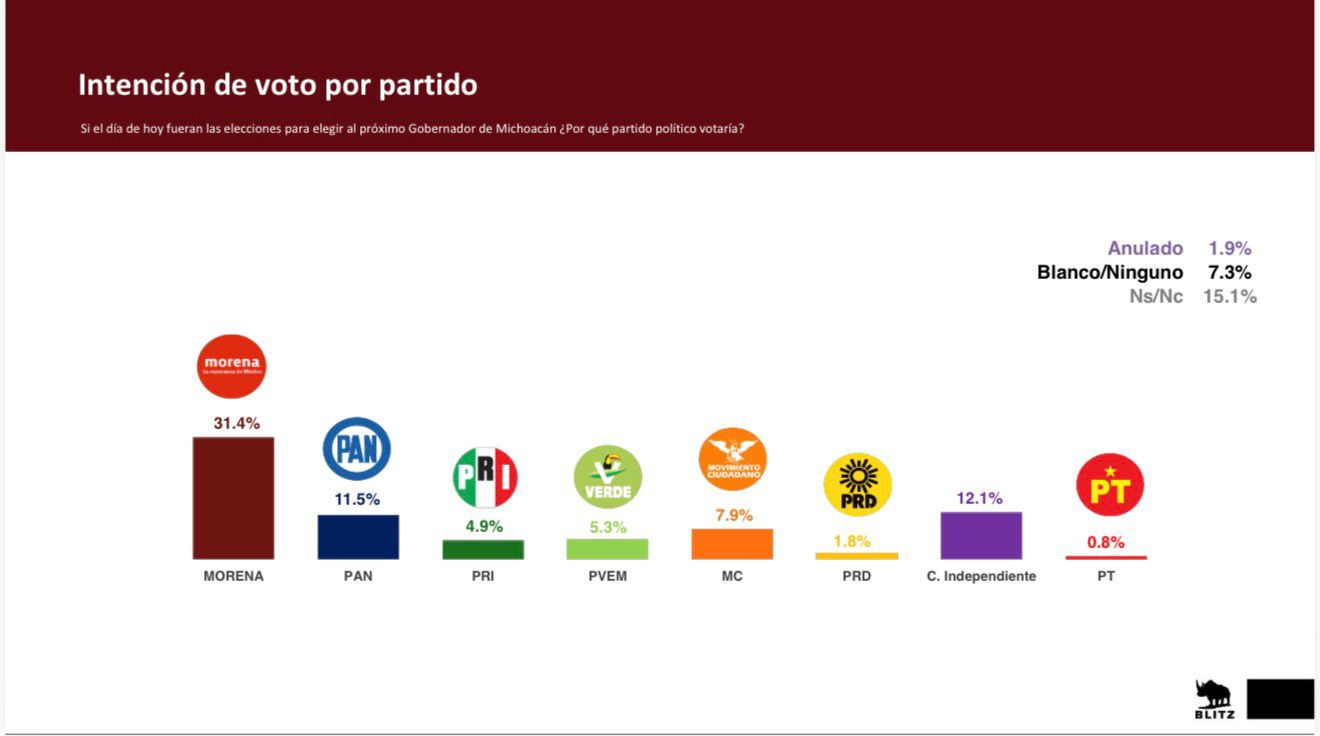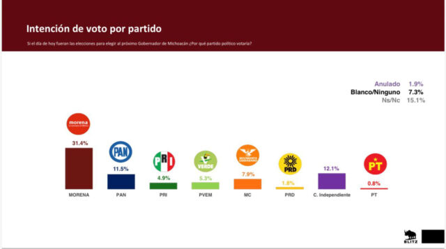 Morelia, Michoacán.– Morena se mantiene como la principal fuerza política en Michoacán rumbo a la elección de gobernador, de acuerdo con la encuesta estatal de Blitz levantada del 7 al 17 de diciembre de 2025.