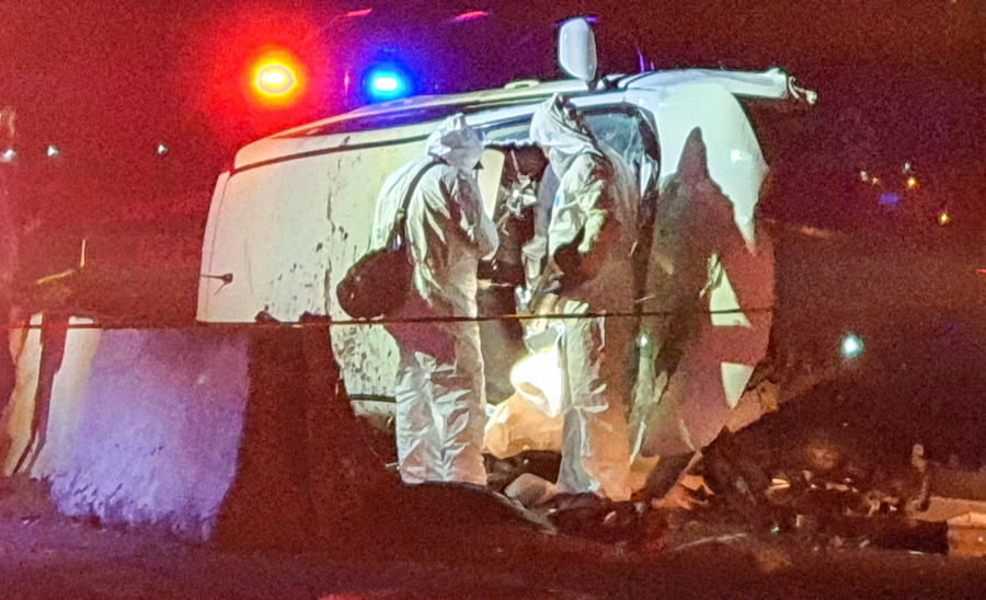 La unidad, conducida a alta velocidad,  se impactó contra la barrera de concreto que separa ambos carriles de circulación, para luego quedar volcada sobre el asfalto.