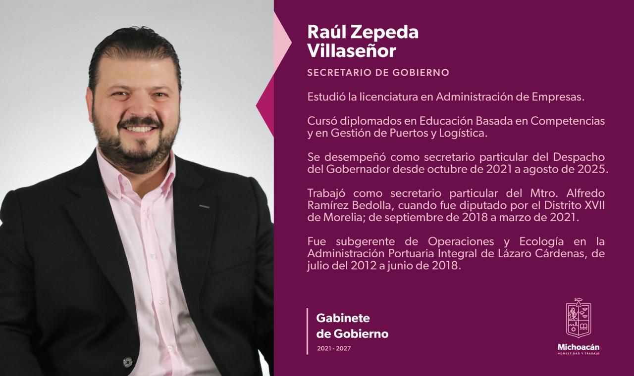Morelia, Mich.- El gobernador Alfredo Ramírez Bedolla designó a Raúl Zepeda Villaseñor como nuevo secretario de Gobierno.
