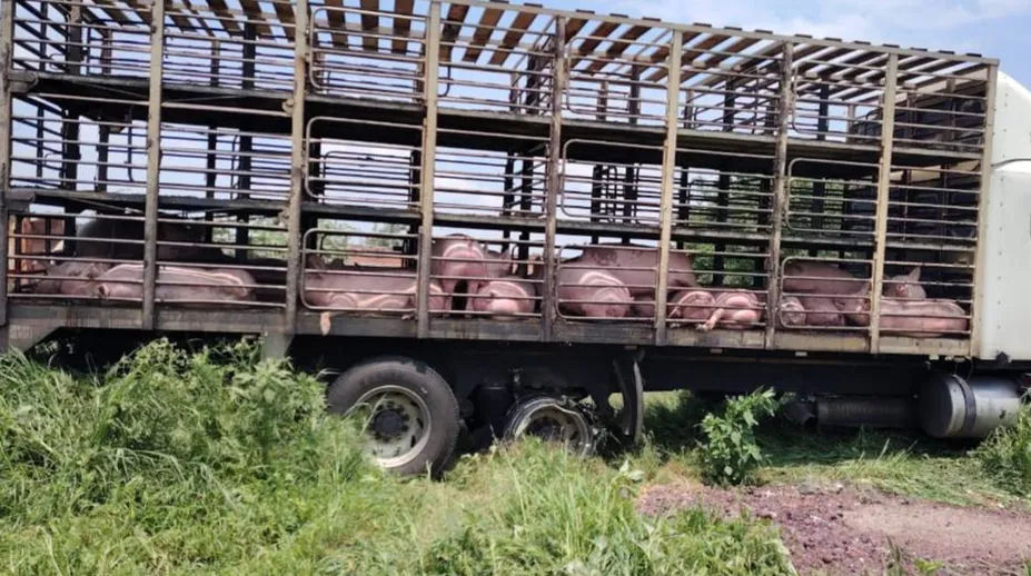 Abasolo, Gto.- Un total de 140 porcinos con un valor aproximado de 654 mil 360 pesos fueron recuperados tras un operativo coordinado entre autoridades de los tres órdenes de gobierno, luego de haber sido sustraídos junto con un tractocamión tipo jaula sobre la carretera federal 37.