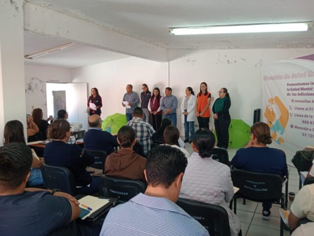 La Piedad, Mich.- Con el objetivo de fortalecer la atención a la salud mental, personal médico, de enfermería, psicología y trabajadores de la Secretaría de Salud adscritos a la Jurisdicción Sanitaria 06 participaron en una capacitación enfocada en la prevención, detección y tratamiento de personas con conductas de riesgo.