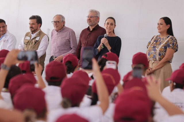 Al recibir a la mandataria federal en el hospital comunitario de Maruata, municipio de Aquila, Ramírez Bedolla, explicó que es de gran beneficio para los adultos mayores y personas con discapacidad que se vaya directamente a las viviendas a brindar atención, a través de las primeras 400 enfermeras y enfermeros que se despliegan en la entidad.