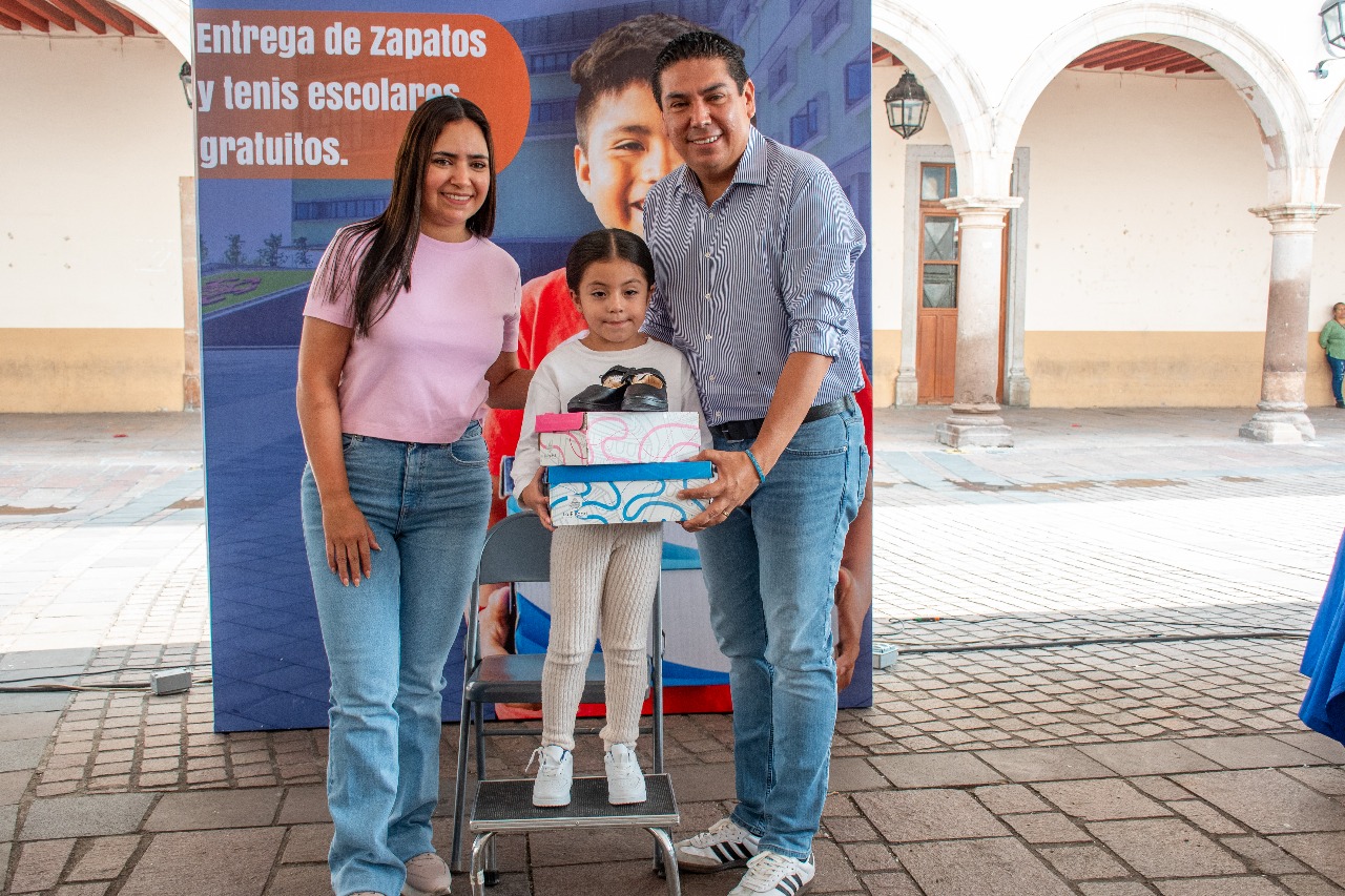 Este lunes 25 de agosto, arrancó en la Plaza Principal la entrega de tenis y zapatos escolares gratuitos a niñas y niños de nivel primaria de la zona rural y urbana del municipio de La Piedad, donde el presidente municipal Samuel Hidalgo, comentó que este es un programa que busca beneficiar la economía de los padres de familia.