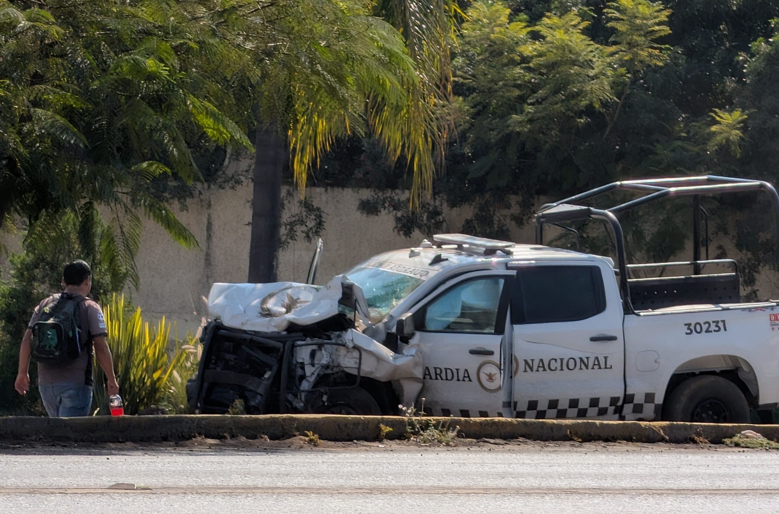 Esto, tras un choque múltiple en el que participaron una patrulla de la GN, dos camionetas particulares, una motocicleta y una bicicleta.
