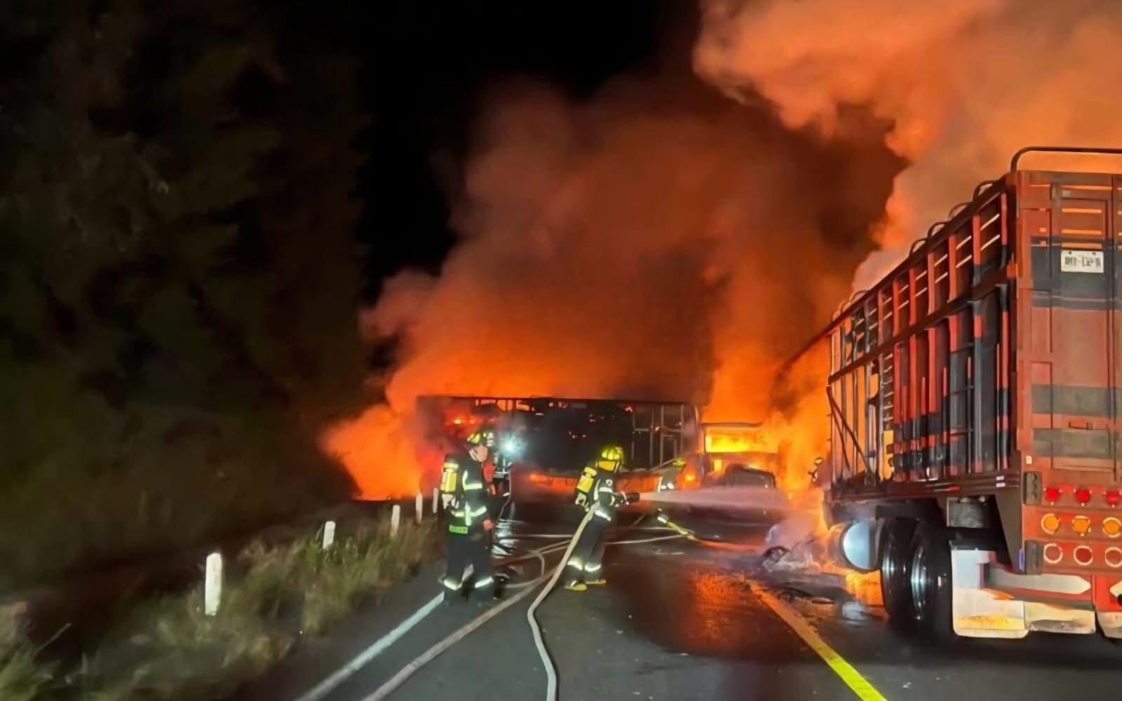 Elementos de la Guardia Civil y policías municipales acudieron al lugar para restablecer el orden y resguardar la zona, mientras que bomberos trabajaron para sofocar las llamas y despejar la vialidad.