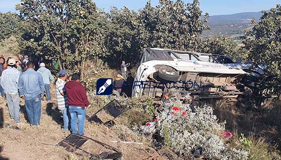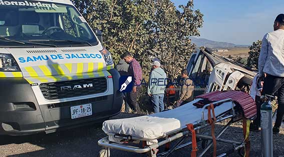 Jesus María, Jal.- Por lo menos 26 personas resultaron lesionadas y dos más perdieron la vida al volcar el autobús en que eran trasladados a su centro de trabajo en la empresa Pirma, asentada en ciudad de San Francisco del Rincón, Guanajuato.
